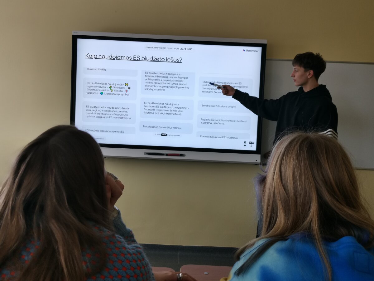 Jaunieji MEPA ambasadoriai per pilietiškumo pamokas gimnazistams vedė užsiėmimus apie Europos Sąjungos biudžetą. Stebėtas video siužetas iš Delfi TV rubrikos „Svarbu europiečiui“, kur plačiau pasakojama apie ilgalaikį ES biudžetą ir kaip jis priimamas. Siužete pasisakė Europos Parlamento narys Andrius Kubilius ir ESTEP valdybos pirmininkas Klaudijus Maniokas. Naudojant Mentimeter įrankį, gimnazistams buvo užduoti klausimai, kas sudaro ES biudžetą, kaip jis yra tvirtinamas ir kaip naudojamos jo lėšos. Atsakymų buvo įvairių. Populiariausias atsakymas, kad ES biudžetas naudojamas investicijoms ir papildo nacionalinius biudžetus, nes kai kurie iššūkiai per sudėtingi vienai valstybei. Organizatoriai pateikė ir įvairių situacijų, scenarijų, kur panaudojamos ES lėšos, pavyzdžiui, kokie finansuojami infrastruktūros arba mokslinių tyrimų projektai, Erasmus. Gimnazistai analizavo gyvenamosios vietovės, aplinkinių kaimo vietovių ir mažiau išsivysčiusių regionų finansuotus plėtros atvejus. Plačiausiai kalbėta apie žmogaus teisių apsaugą.