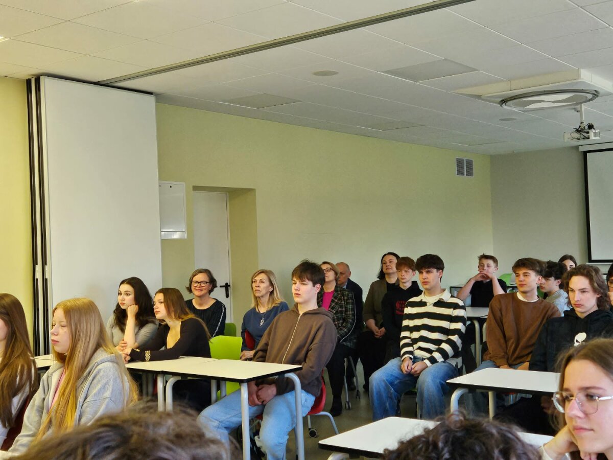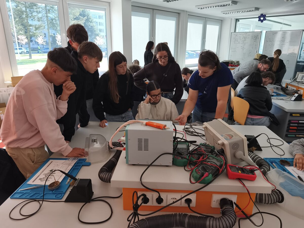Išvyka į Kauno technologijos universitetą suteikė galimybę susipažinti su moderniomis studijų kryptimis. Mokiniai dalyvavo Fab LAB litavimo dirbtuvėse Elektros ir elektronikos fakultete, vėliau lankėsi Statybos ir architektūros fakultete, kur klausėsi dr. Indrės Gražulevičiūtės-Vileniškės paskaitos „Gamta, keičianti architektūrą“. Dalis mokinių taip pat lankėsi Mokslo saloje.