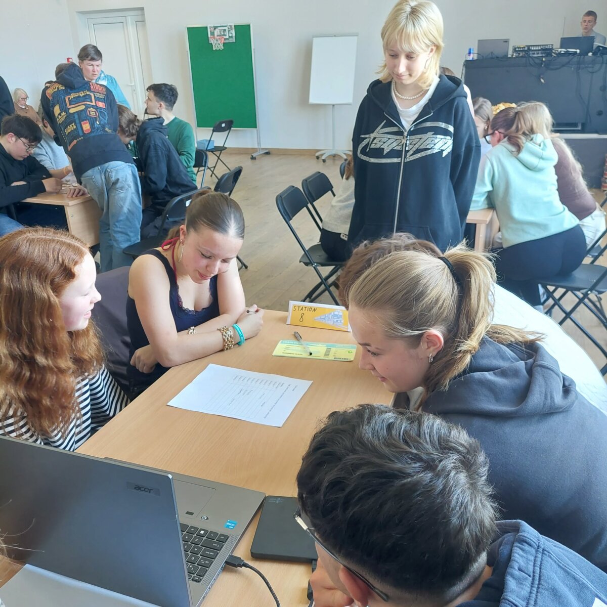 Ne mažiau įspūdžių paliko pažintis su Kauno senamiesčiu – čia mokiniai dalyvavo interaktyviame žaidime „Goosechase“, kuris skatino komandinius įgūdžius, kūrybiškumą ir bendradarbiavimą.